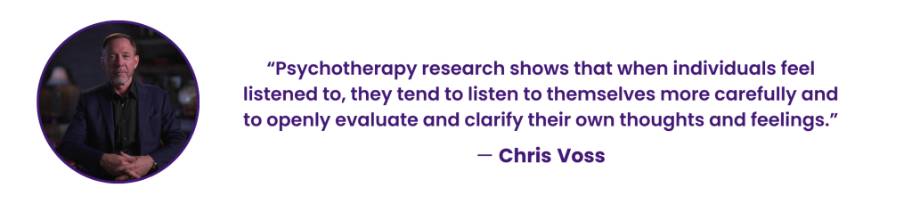 Invite them to talk it out. Ask, “What part of the decision still feels unclear?” Giving them space to process helps them build clarity and confidence. According to Chris Voss, when someone feels listened to, they begin hearing their own thoughts more clearly. That means your role is to hold space so the buyer can talk themselves into clarity. You’re coaching them through a decision they already want to make.