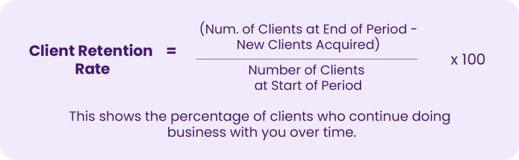 What is client retention rate? It tells you how good you are at keeping your customers coming back over time.