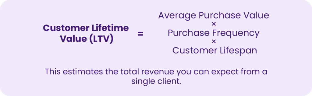 What is customer lifetime value (LTV)? It is the total amount of money you expect to make from one customer during their entire relationship with your business.