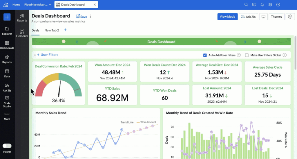 Best For: Solopreneurs who want customization and already use Zoho tools.